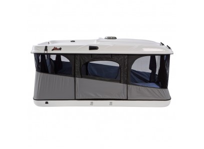 Spezielle Jubiläumsausführung mit schwarzer, grauer oder weißer Schale. Neue Baureihe mit hyperleichtem Schließmechanismus und Panoramafenstern. Das GRAND RAID M ist der Bestseller James Baroud! Integrierter Lastenträger am Rumpf, Kapazität 20 kg. Modell: mit Solarventilator, LED-Badeleuchte und lichtundurchlässiger dunkelgrauer Plane
