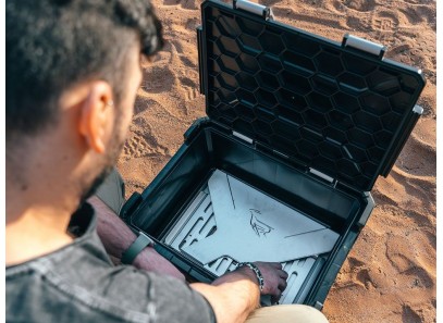 La cuisine de camp vient de se faire de manière encore plus portable grâce à cette boîte à BBQ qui maintient la flamme hors du sol pour des grillades en toute sécurité n'importe où. Se range à plat pour économiser un précieux espace de chargement et se transporter facilement et se range facilement dans les boîtes Wolf Pack ou Wolf Pack Pro*.