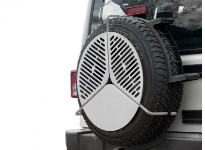 Montage spécifique sur la roue de secours afin de ne pas prendre de place S’adapte sur tout pneus jusqu’à 35’’ Grille inox de 600mm, poids 6kg