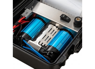 Idéal pour les gros pneus ! Compresseur Monocylindre 160 l/min complet avec manomètre, flexible rilsan à raccord rapide, alimentation 12v par pinces croco et sacoche de transport. Ce compresseur 160 l/min, solide et performant, avec son débit proche de 10m3/h à 2 bars de pression, permet de faire passer un pneumatique 265x70x16 de 1bar à 2 bar en 1.5...