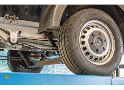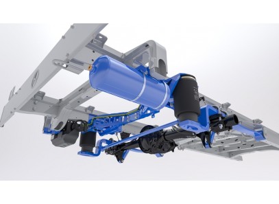 Sur un véhicule avec des ressorts à lames, un coussin d'air est monté entre le châssis et l'essieu arrière. Ce coussin d'air supporte le ressort à lames existant