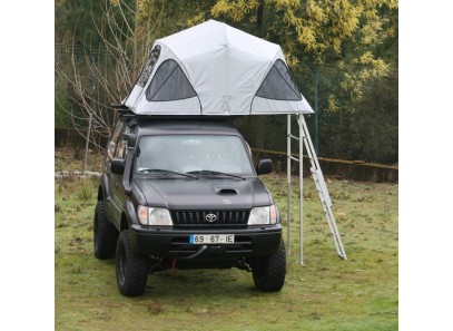Concept et design révolutionnant la tente de toit souple. 150x220cm La tente Vision a été la première tente de toit pliable s'ouvrant à l'aide d'amortisseurs à gaz. C'est la tente la plus légère du monde en raison de sa structure tout alu avec couche isolante à l'intérieur, sans besoin de double toit.