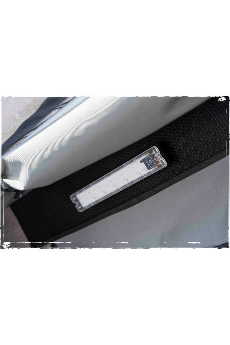 Des accessoires pratiques rendent le camping encore plus agréable : 12 poches de rangement intégrées, deux lampes de lecture LED, deux ports USB 3.0 et quatre ports USB-C, ainsi que plusieurs points d’entrée garantissent confort et flexibilité. De nombreuses fenêtres assurent une ventilation optimale lors des journées chaudes, tandis qu’une sortie pour tuyau d’air chaud vous garde au chaud pendant les nuits fraîches. Avec le puits de lumière intégré, vous pouvez contempler les étoiles ou vous réveiller doucement avec le lever du soleil.