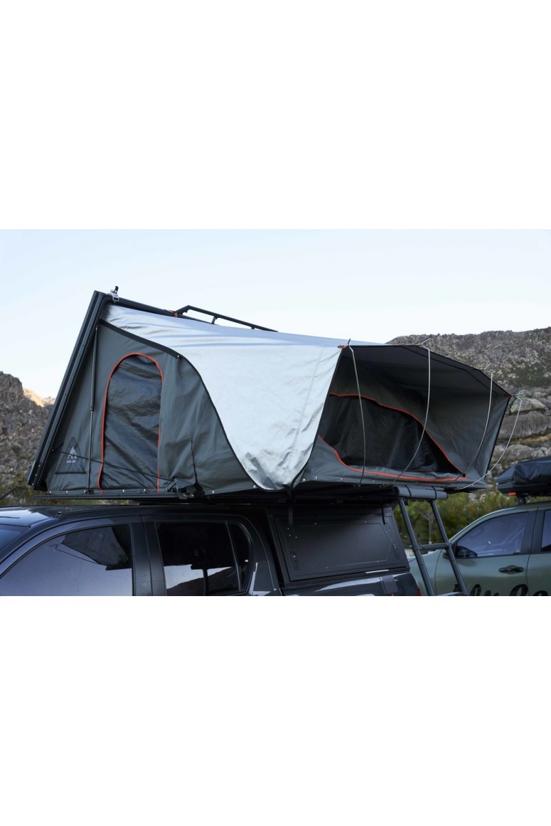 L’installation est simple : avec 3 barres de charge (largeur minimale recommandée : 1450 mm), la tente se fixe solidement sur presque tous les véhicules disposant de la capacité de charge de toit appropriée. Grâce à sa conception symétrique, vous pouvez même choisir lors du montage si la tente s’ouvre du côté gauche ou droit du véhicule.