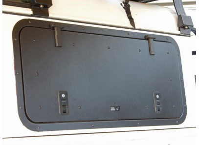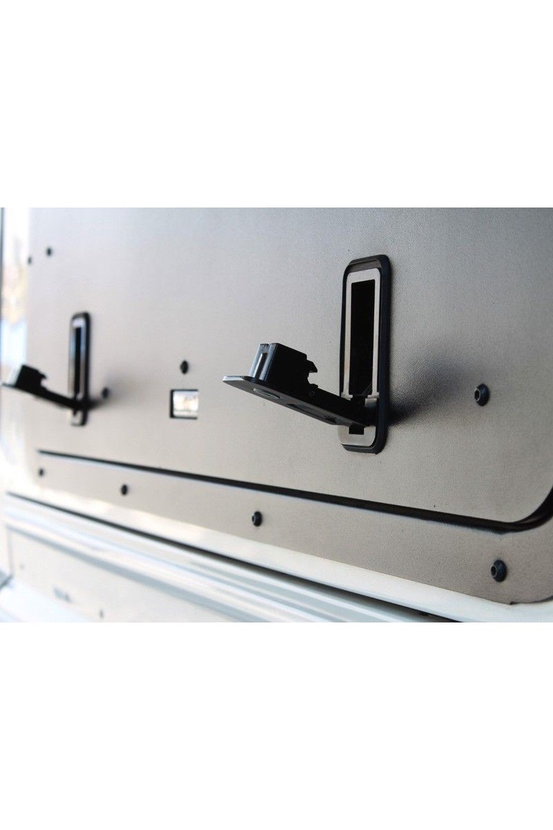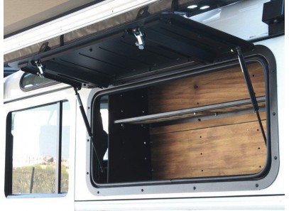 Le hayon latéral en verre se monte en lieu et place des fenêtres latérales d’un Defender et vous permet de basculer la fenêtre, ce qui crée un accès à 100% au contenu de votre espace de chargement.