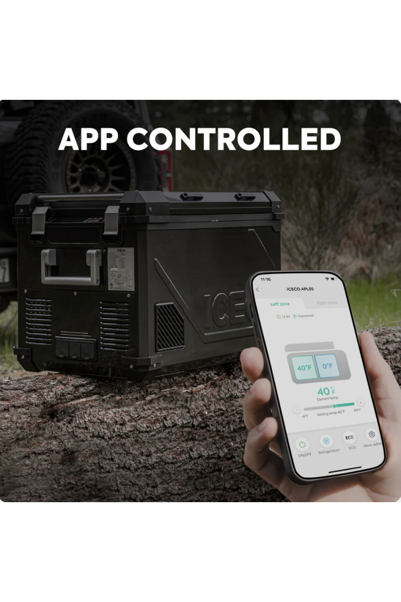 La ICECO APL55 combine robustesse, performance et technologie intelligente dans une glacière à compresseur haut de gamme conçue pour le camping, l’overlanding, les road trips et un usage quotidien exigeant.