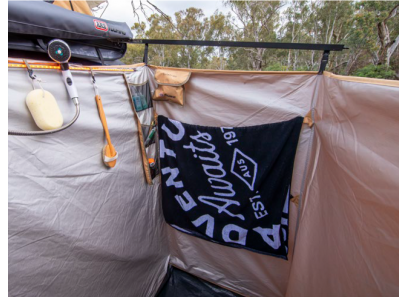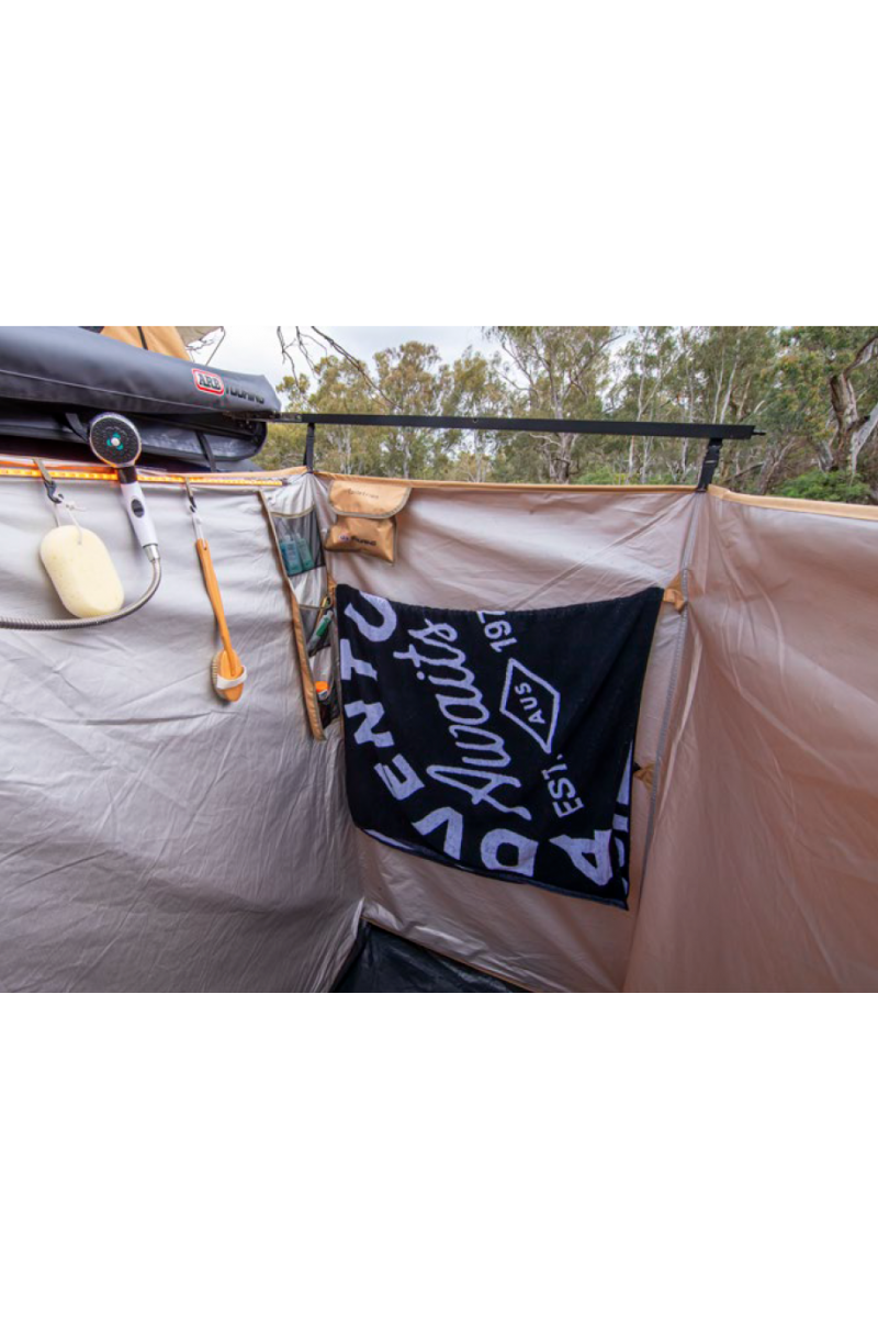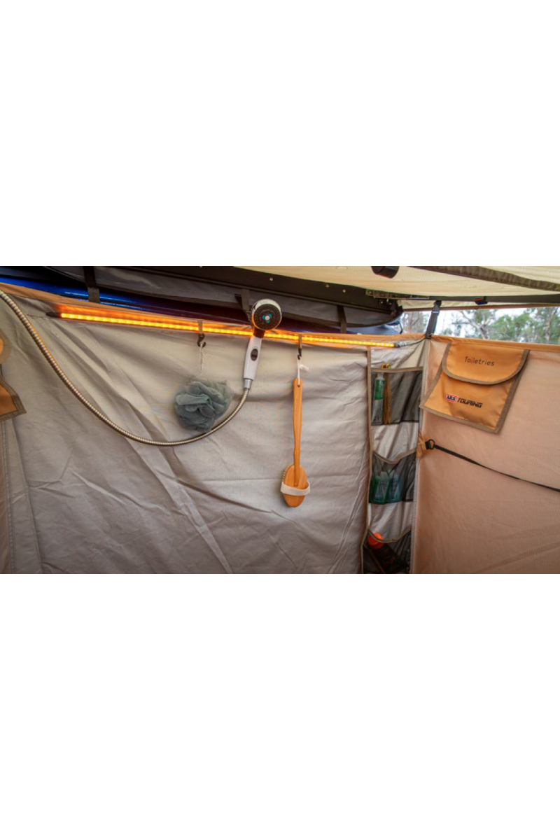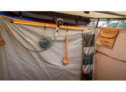 · 3x emplacements pour le montage de la pomme de douche ; toit, velcro sur la paroi arrière ou crochets sur la paroi arrière