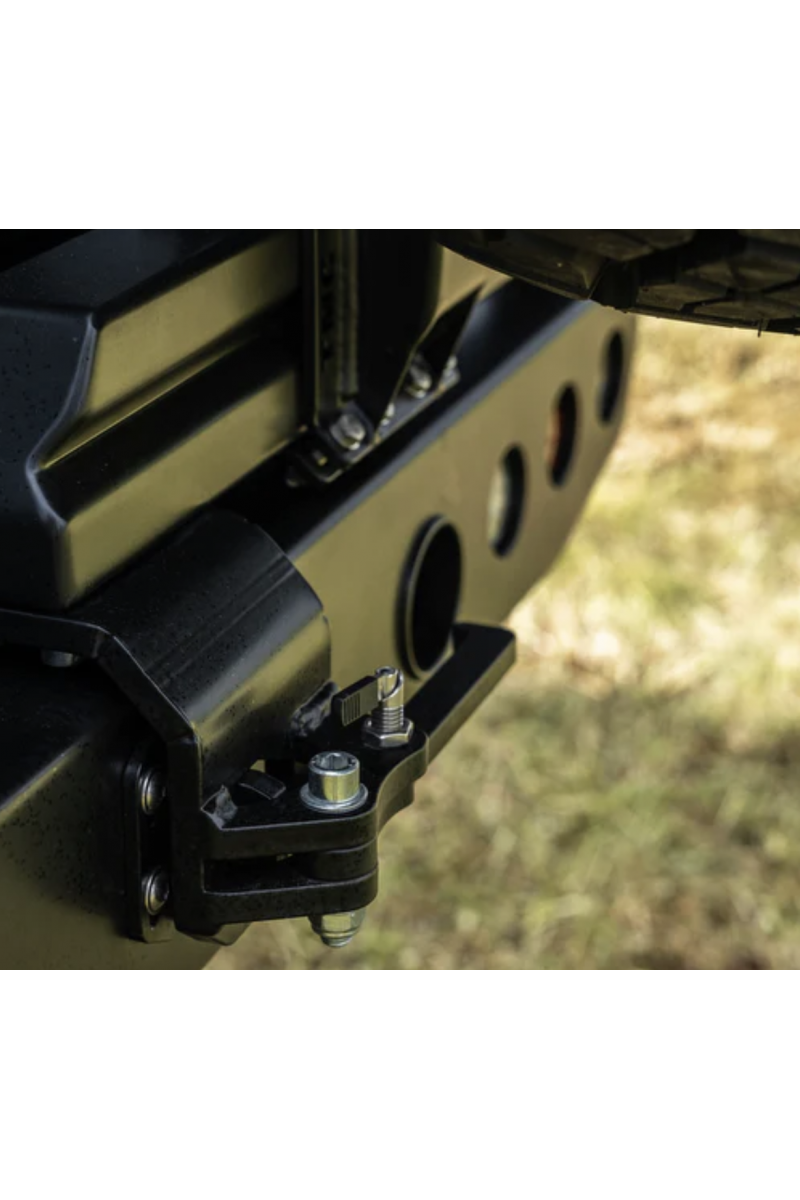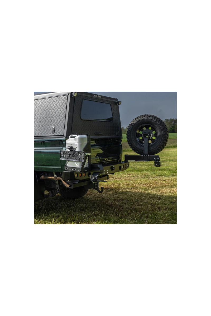 Permet le transport sécurisé du roue de secours, libérant de l’espace sous le véhicule – particulièrement utile en présence de ponts rehaussés ou de réservoirs supplémentaires. Conçu pour supporter de grands pneus off-road, même en terrain très accidenté.