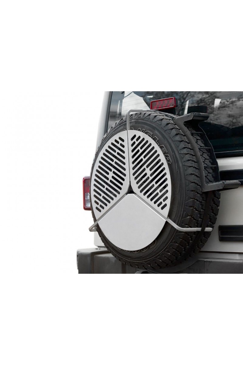 Cette grille de BBQ ingénieuse en acier inoxydable s’installe sur votre roue de secours et ne prend donc presque pas de place.