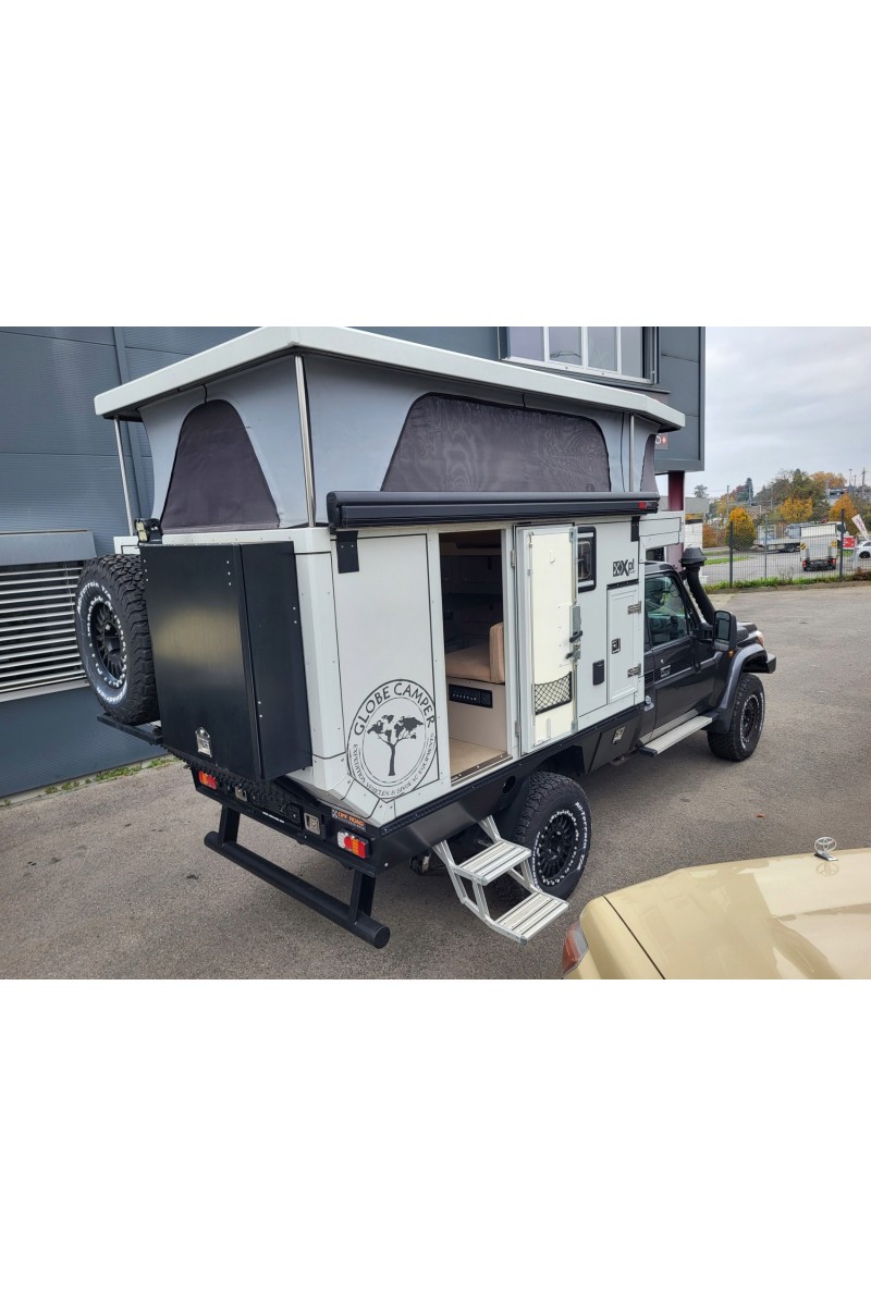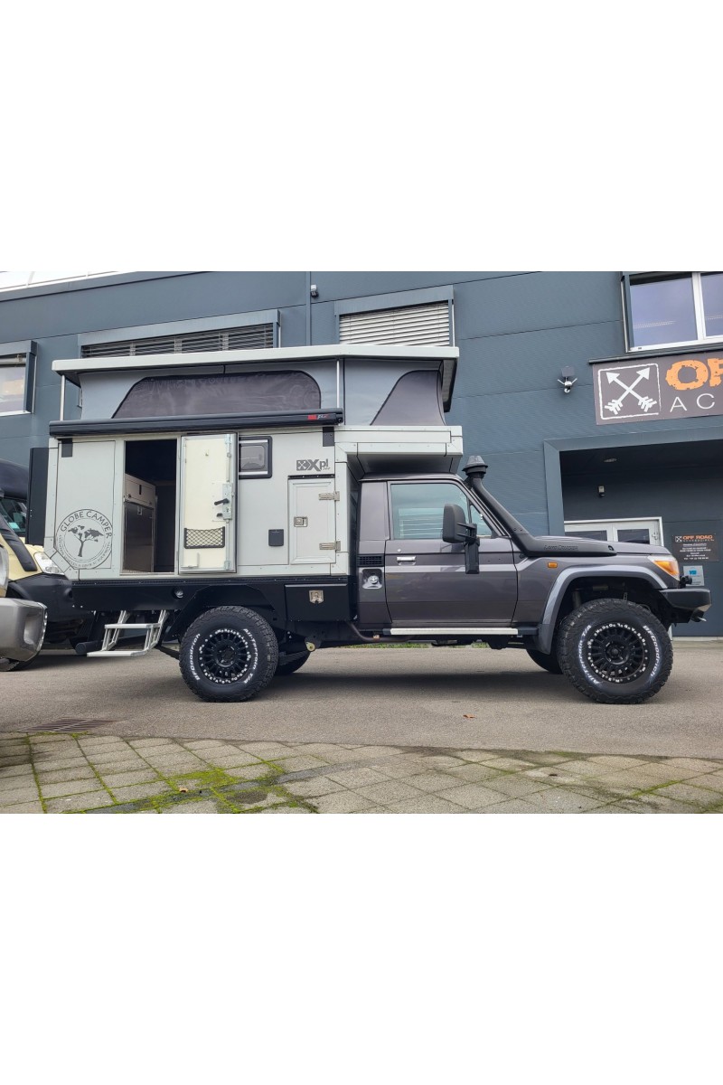 Basé sur le légendaire Land Cruiser GRJ79, il est équipé d’un puissant V6 4.0L de 228cv peu sophistiqué ne craignant ni les mauvais carburants ni le froid ou l’altitude contrairement au moteurs diesel de dernière génération Euro 6 équipés Adblue.
