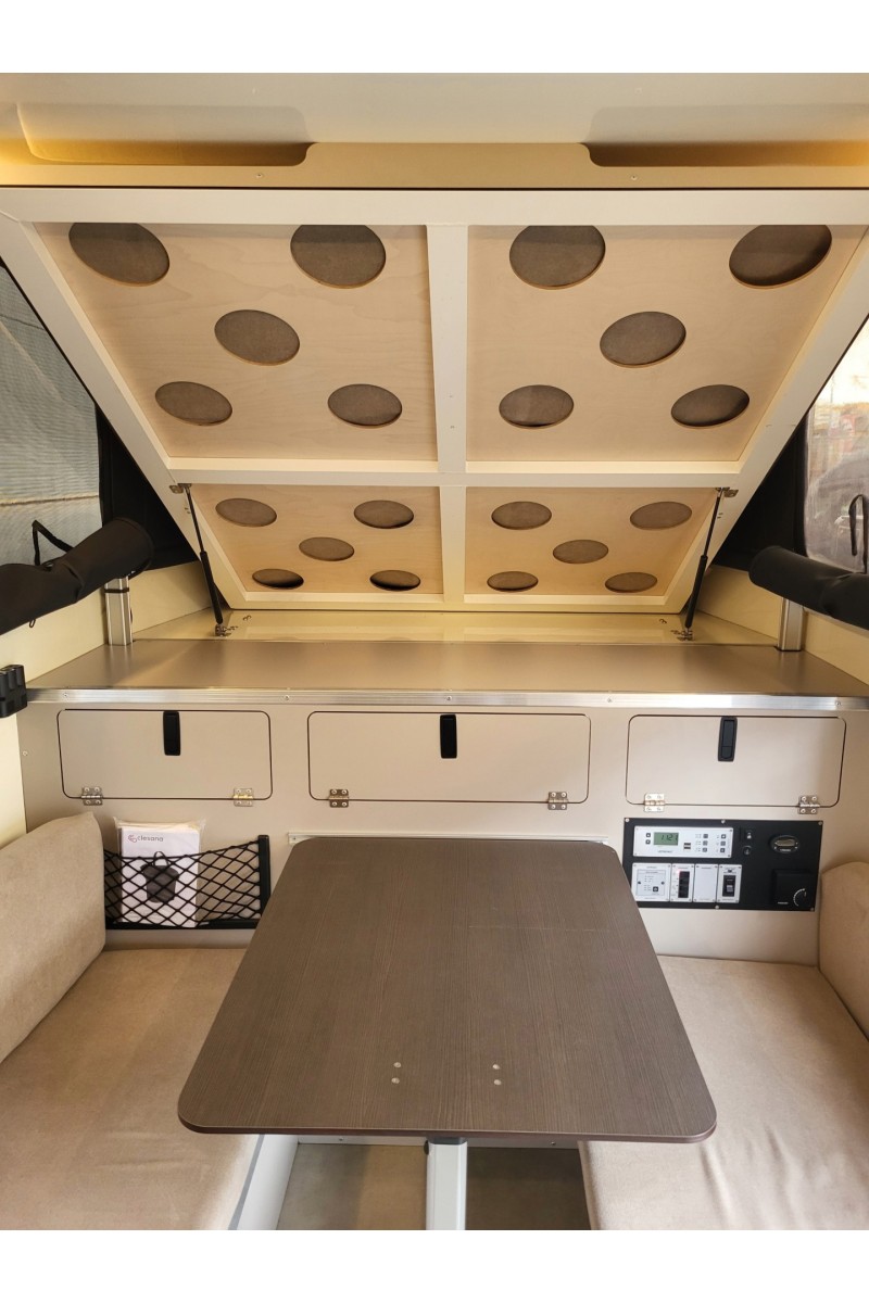 Doté d’un toit relevable horizontal panoramique le Xpl 360° offre un volume incroyable dans un vrai véhicule d’expédition tout en restant compact.