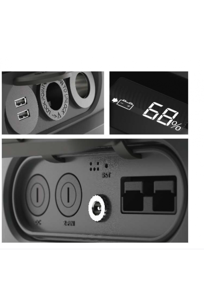 50% plus légères que les batteries plomb-acide comparables grâce aux cellules lithium fer phosphate (LiFePo4). Permet des temps de refroidissement jusqu'à 40 heures et plus avec une glacière CFX 40 W. Alimente les petits appareils électriques et les glacières électriques via USB (5 V) et allume-cigare (12 V). Rechargeable via allume-cigare 12 V DC, panneau solaire ou alimentation 230 V AC.