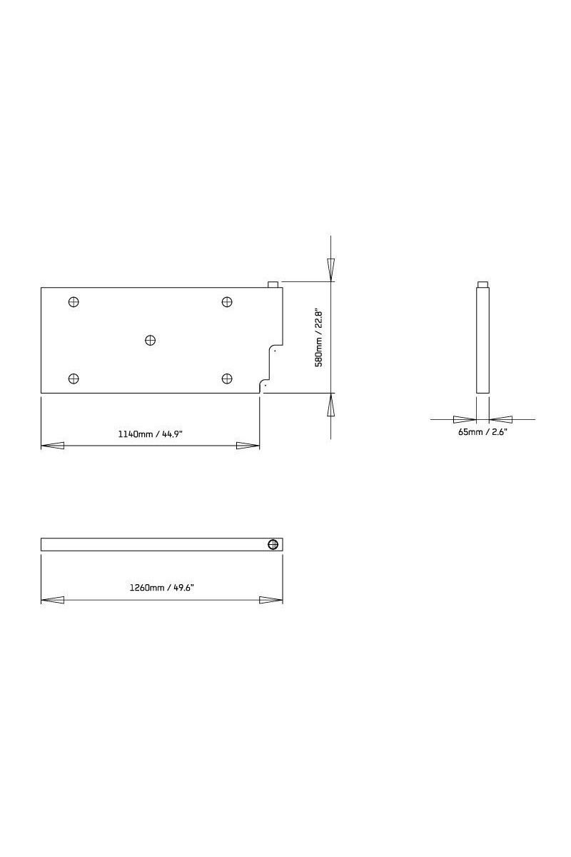 l 1260mm (50") x H 550mm (21.7") x L 65mm (2.6")