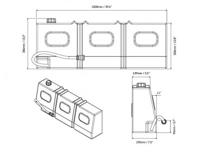 Ce réservoir est universel au niveau de sa mise en place ; il peut être utilisé dans un système de rangement personnalisé, dans une caravane et dans d’autres véhicules.