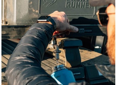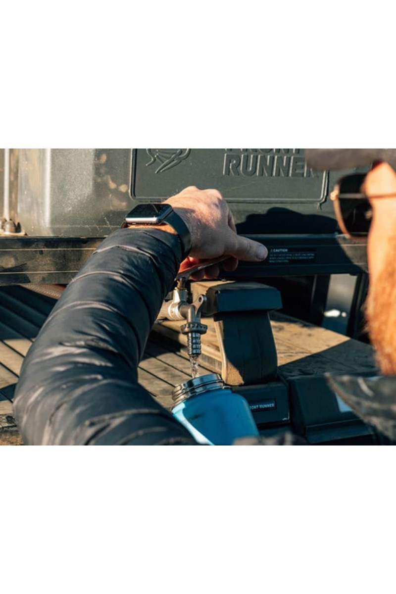 Étendez votre robinet de réservoir d’eau loin de votre véhicule pour faire verser l’eau stockée sans effort lors de n’importe quelle aventure.