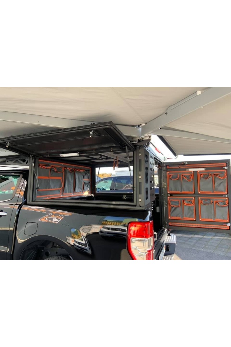 ·1x Kit de montage spécifique à votre pickupLe Canopy Camper est une solution innovante fusionnant un hard-top avec un toit relevable intégrant un couchage grand confort de 1340 x 2600mm. Vous disposez ainsi d'un volume livre complet équivalent à votre benne équipée d'un hard-top + un couchage équivalent à une tente de toit mais accessible directement depuis l'intérieur de la cellule. Le hayon de la benne est remplacée par une porte étanche à l'eau et à la poussière et robuste pour y accueillir une roue de secours (porte-roue en option).