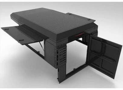 Cellule extrêmement robuste en aluminium, ultra compacte sans le moindre porte-à-faux, ultra légère (poids à vide 210kg et poids en ordre de marche 250kg pour le modèle double cab) permettant de s'y tenir debout grâce à son toit relevable avec literie complète intégrée • Livrée nue sans aménagement intérieur afin de vous permettre un aménagement sur-mesure au plus près de vos besoins et de vos attentes.