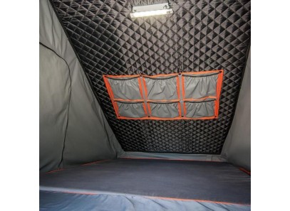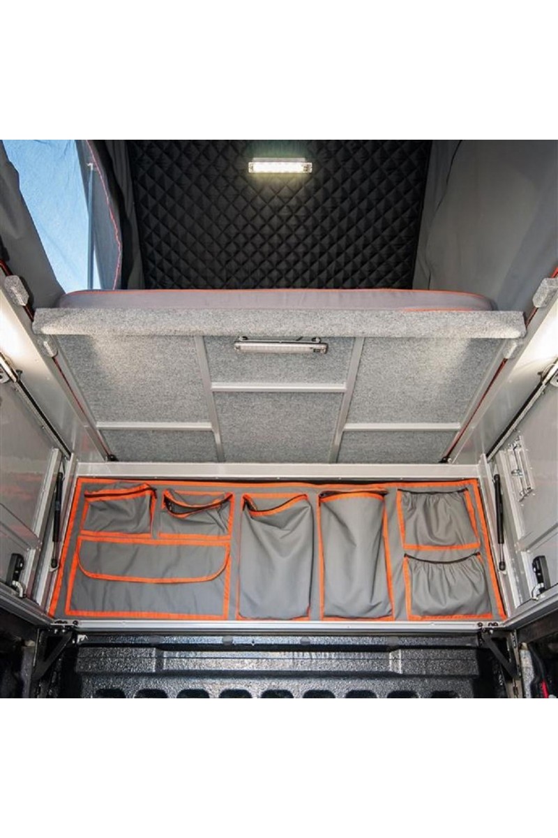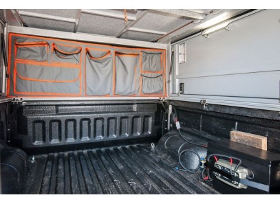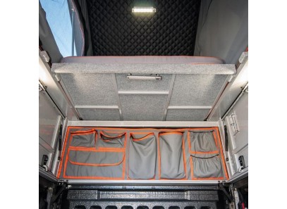 ·1x Rangement multipoches en toile contre la paroi du fond (dos à la cabine)