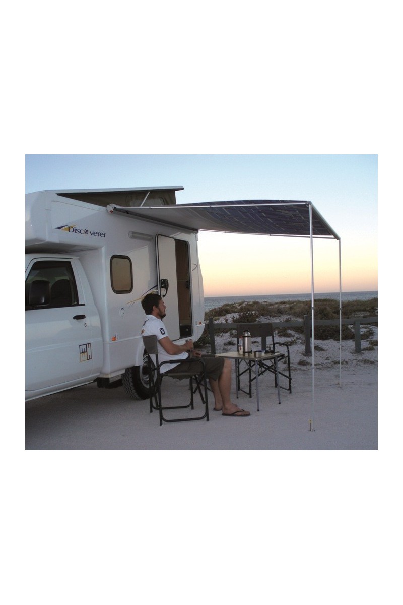 Store extérieur manuel particulièrement adapté aux monospaces, minivan, 4x4 ou break. Très léger et compact F35 Pro 220 - Titanium Longueur du store A : 223 cm Longueur de la toile B : 202 cm Avancée : 225 cm Hauteur max du sol : 225 cm Surface d'ombre : 4,5 m2 Poids10,5 kg