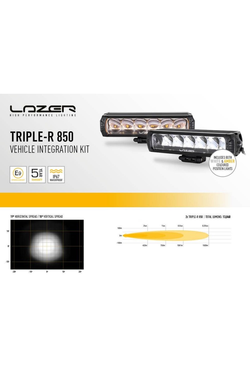 Le kit d'intégration à la calandre du Ford Ranger XLT est soigneusement conçu et optimisé pour être utilisé avec les projecteurs LED haute performance Triple-R 850. Notre garantie ne couvre pas les supports de calandre équipés de produits d'une autre marque que Lazer Lamps.
