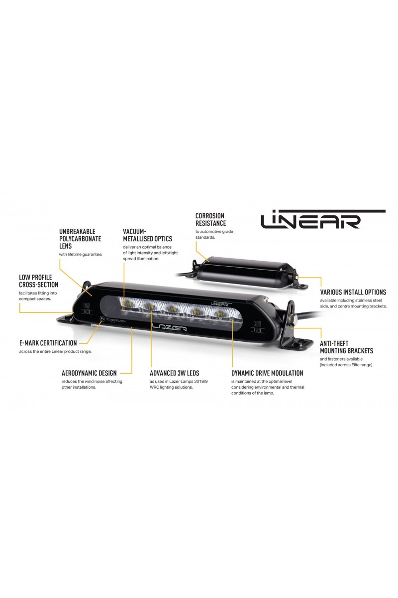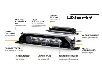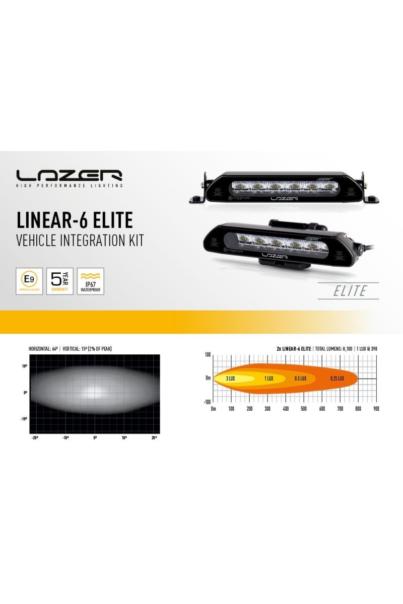 L'option Linear-6 Standard constitue une excellente solution économique, qui apporte une amélioration significative par rapport aux feux de route standard du véhicule. L'option Linear-6 Elite va encore plus loin en doublant la puissance lumineuse par rapport aux feux standard équivalents, 1 lux est délivré à 400 m, avec une diffusion de la lumière de 42 degrés à gauche et à droite qui laisse peu de place à l'imagination à la tombée de la nuit.