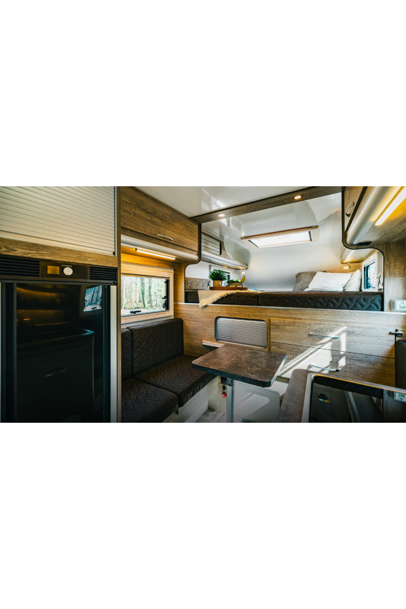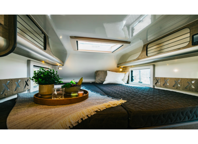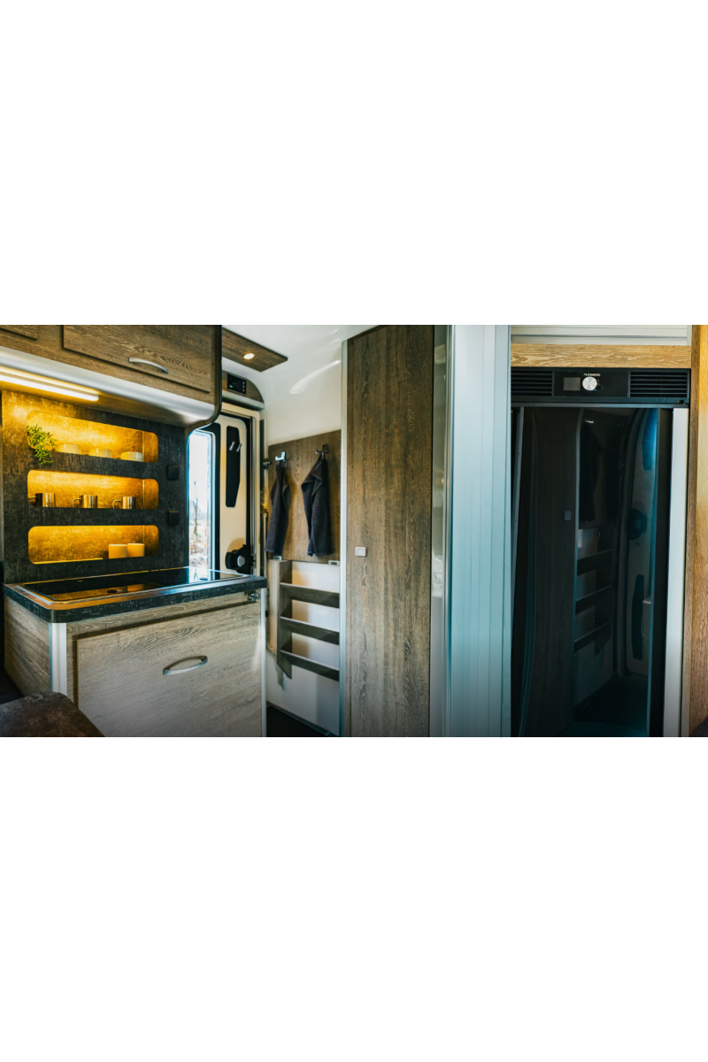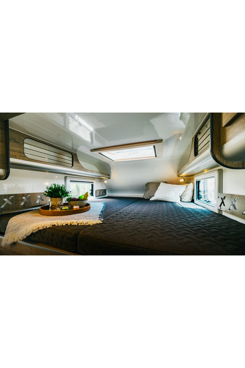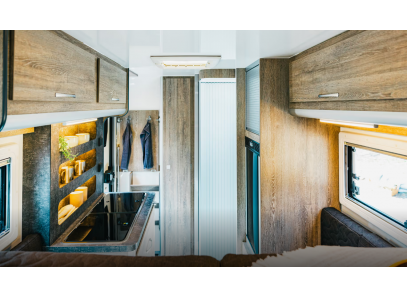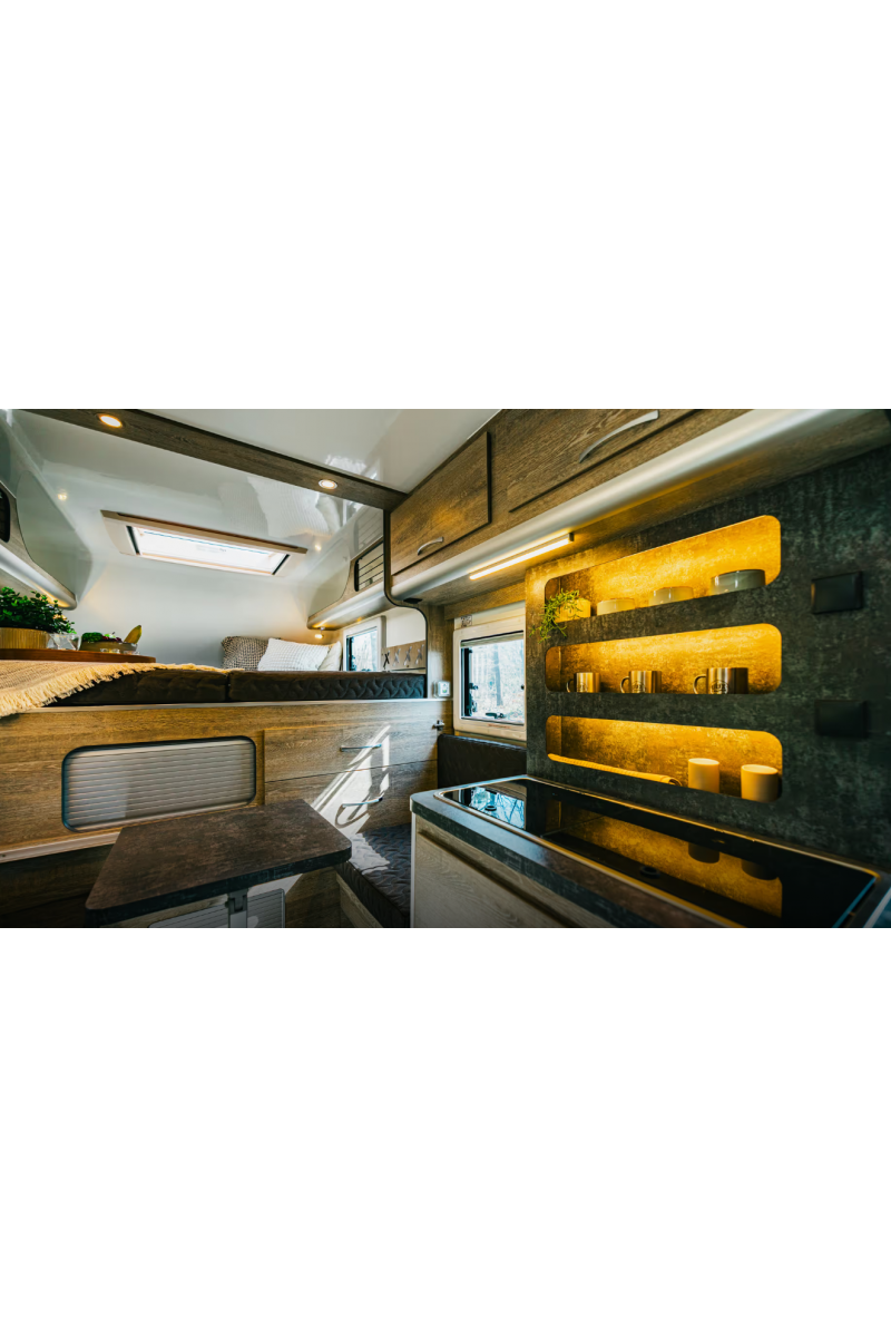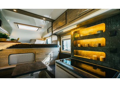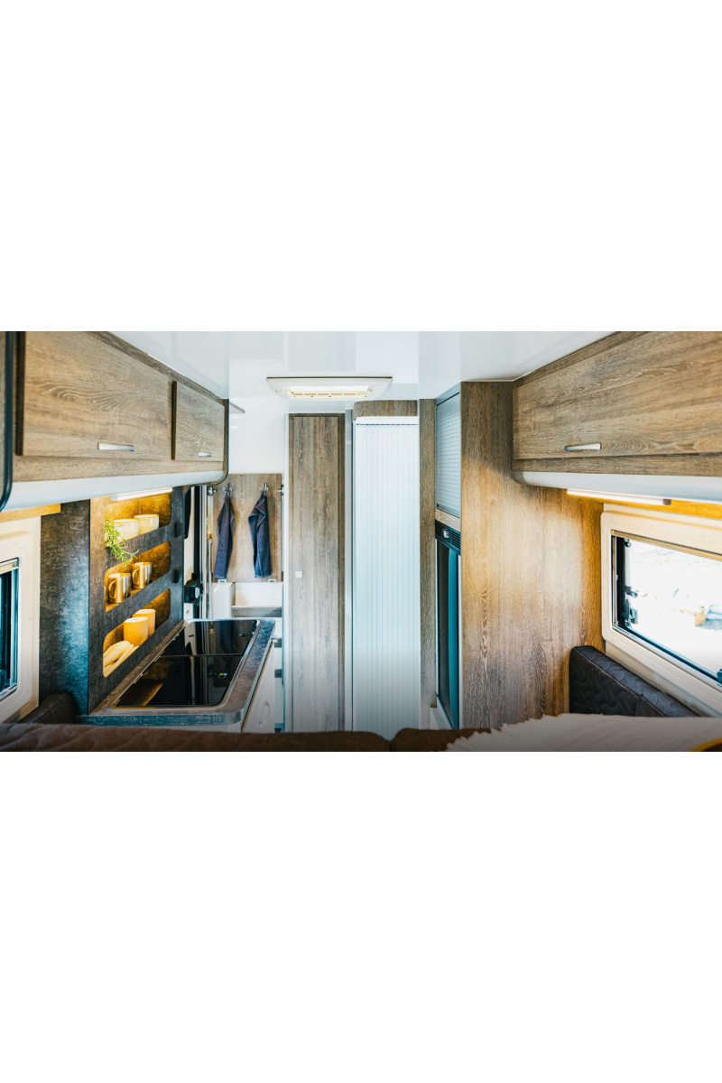 Cette cellule habitable est fabriquée en Europe et séduit par son équipement de série complet, son prix attractif, sa finition haut de gamme avec des composants de marque, sa construction moderne en GFK-XPS-GFK (aucun plancher ou parois en bois) ainsi que par ses délais de livraison rapides.