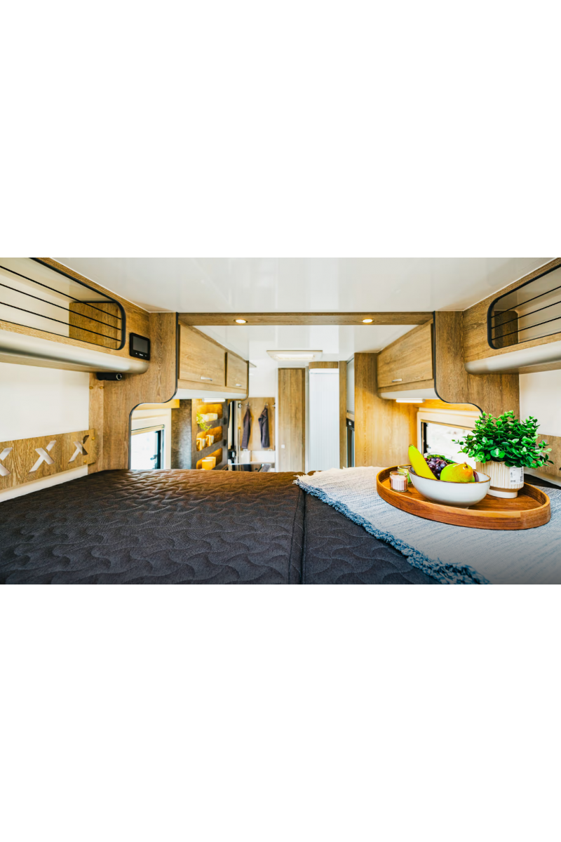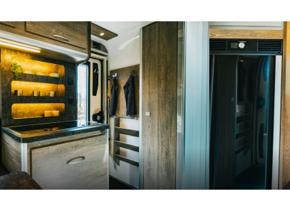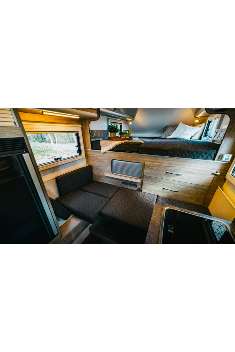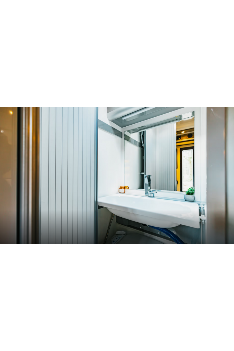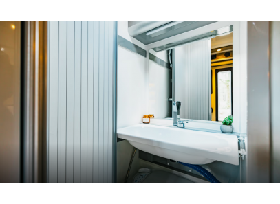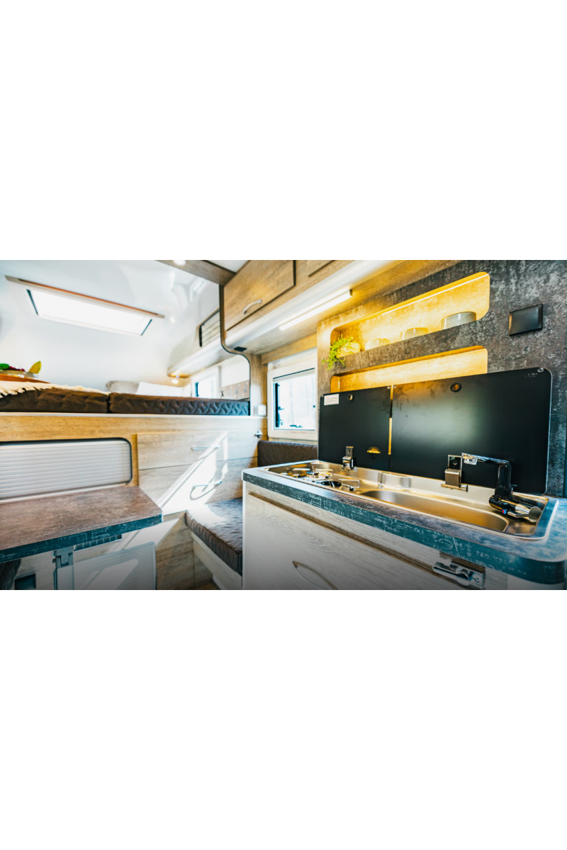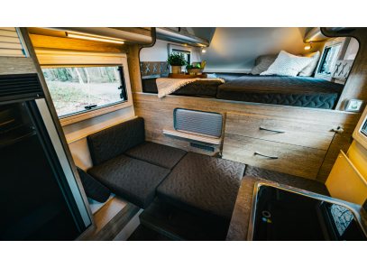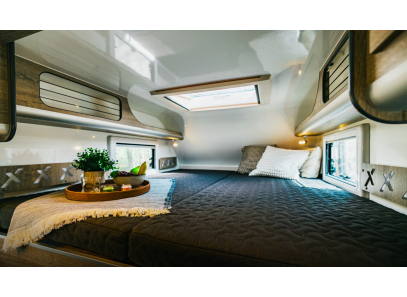 Cette cellule habitable est fabriquée en Europe et séduit par son équipement de série complet, son prix attractif, sa finition haut de gamme avec des composants de marque, sa construction moderne en GFK-XPS-GFK (aucun plancher ou parois en bois) ainsi que par ses délais de livraison rapides.