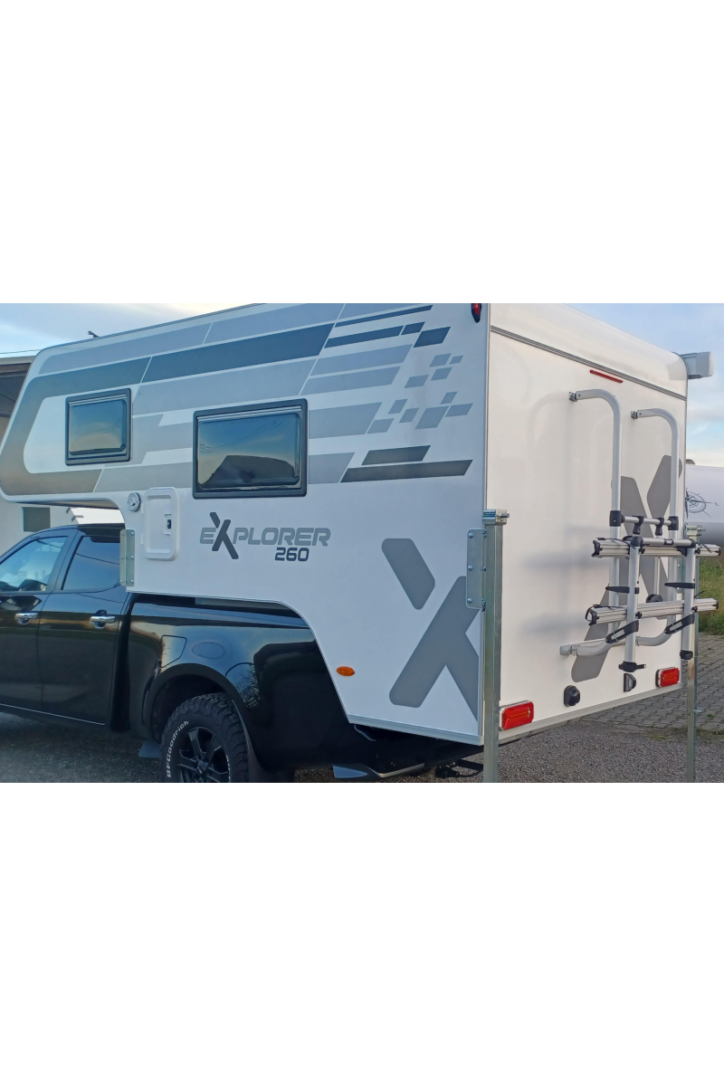 La nouvelle KAMPERA EXPLORER 240S s’adapte à tous les pick-up double cabine courants, comme par exemple Ford Ranger, VW Amarok, Toyota Hilux, Nissan Navara, Isuzu D-Max, Renault Alaskan, Mercedes X-Class, Fiat Fullback, Mitsubishi L200, Jeep Gladiator, etc.
