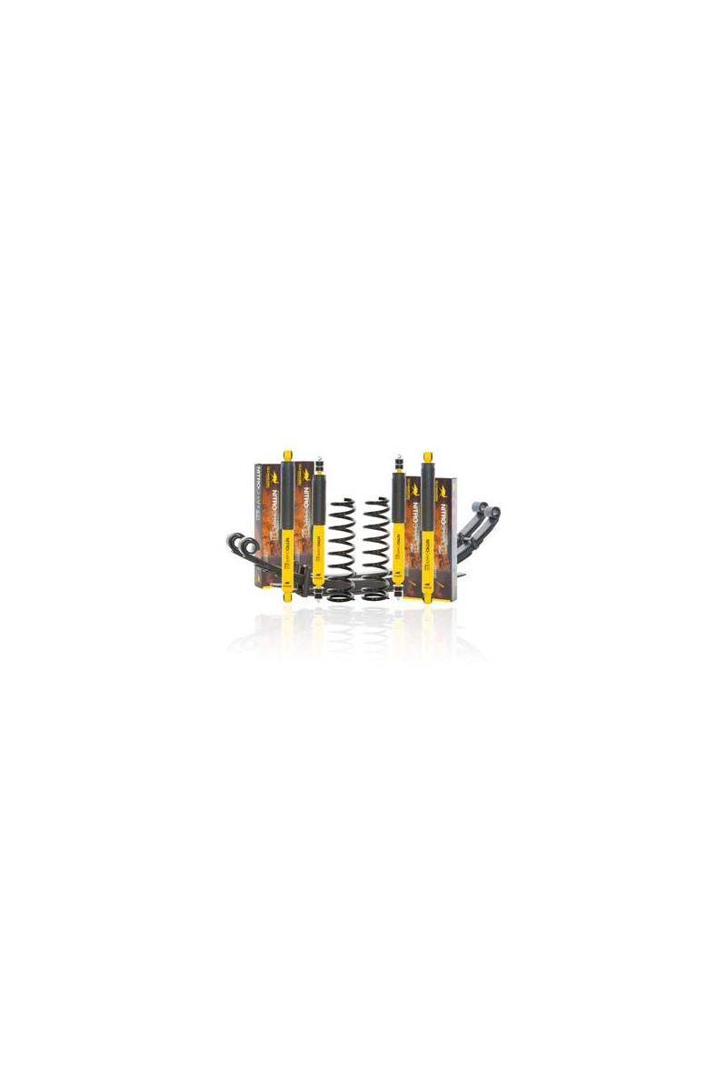 Les appelations dites Médium vous apporteront une réhausse de 40 à 55mm (idéal pour un usage mixte, route et tout terrain), les références HD (Lourd) pour une réhausse de plus de 60mm (destinées essentiellement pour des charges lourdes ou de la traction, évitant ainsi l'affaissement du véhicule).