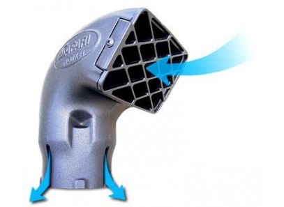 La tête d'origine du snorkel 4x4 peut être indifféremment dirigée vers l’avant ou vers l’arrière. Dans la position avant, l'eau de pluie est tout de même rejetée en bonne partie sur l'arrière du snorkel d'où elle s'échappe.