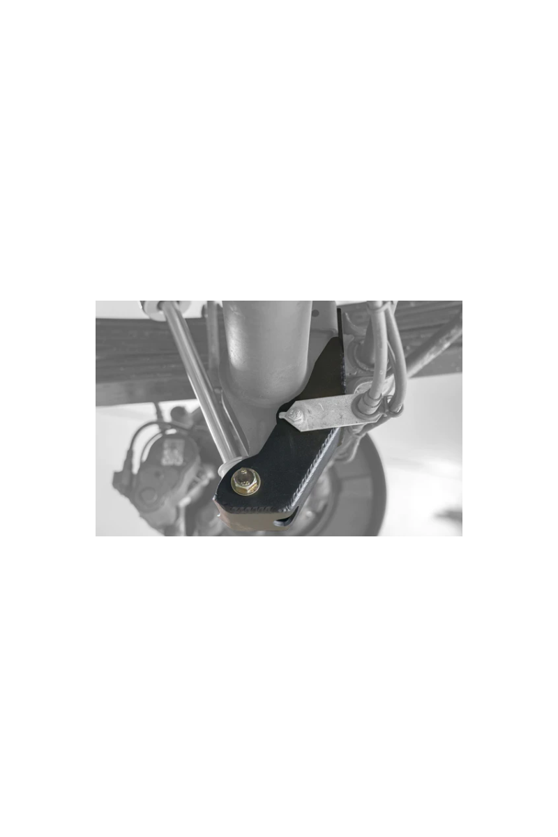 Les supports d'amortisseurs arrière sont l'un des éléments les plus bas à l'arrière de votre fourgon. Nos supports Baja Sur sont conçus pour envelopper et renforcer le mince support d'amortisseur inférieur d'usine avec de l'acier 3/16" découpé au laser et formé. Cela ajoute de la rigidité et de la sécurité, car nous avons même vu des rapports d'ateliers de pneus négligents tordre ces supports en les soulevant avec un cric. Pour une plus grande tranquillité d'esprit, nous avons également amélioré le support de butée inférieure arrière sur l'essieu, qui a tendance à se briser sur les fourgons lourds utilisés en tout-terrain.
