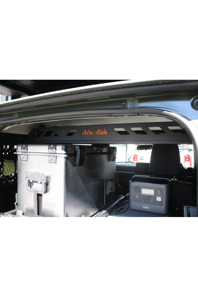 La tablette intérieure en aluminium Alu-Cab permet d’optimiser l’espace de rangement à l’intérieur du Suzuki Jimny et d’exploiter pleinement le volume disponible dans l’habitacle. Conçue avec une structure légère et robuste, elle intègre un panneau Molle permettant de fixer et d’organiser facilement différents équipements.