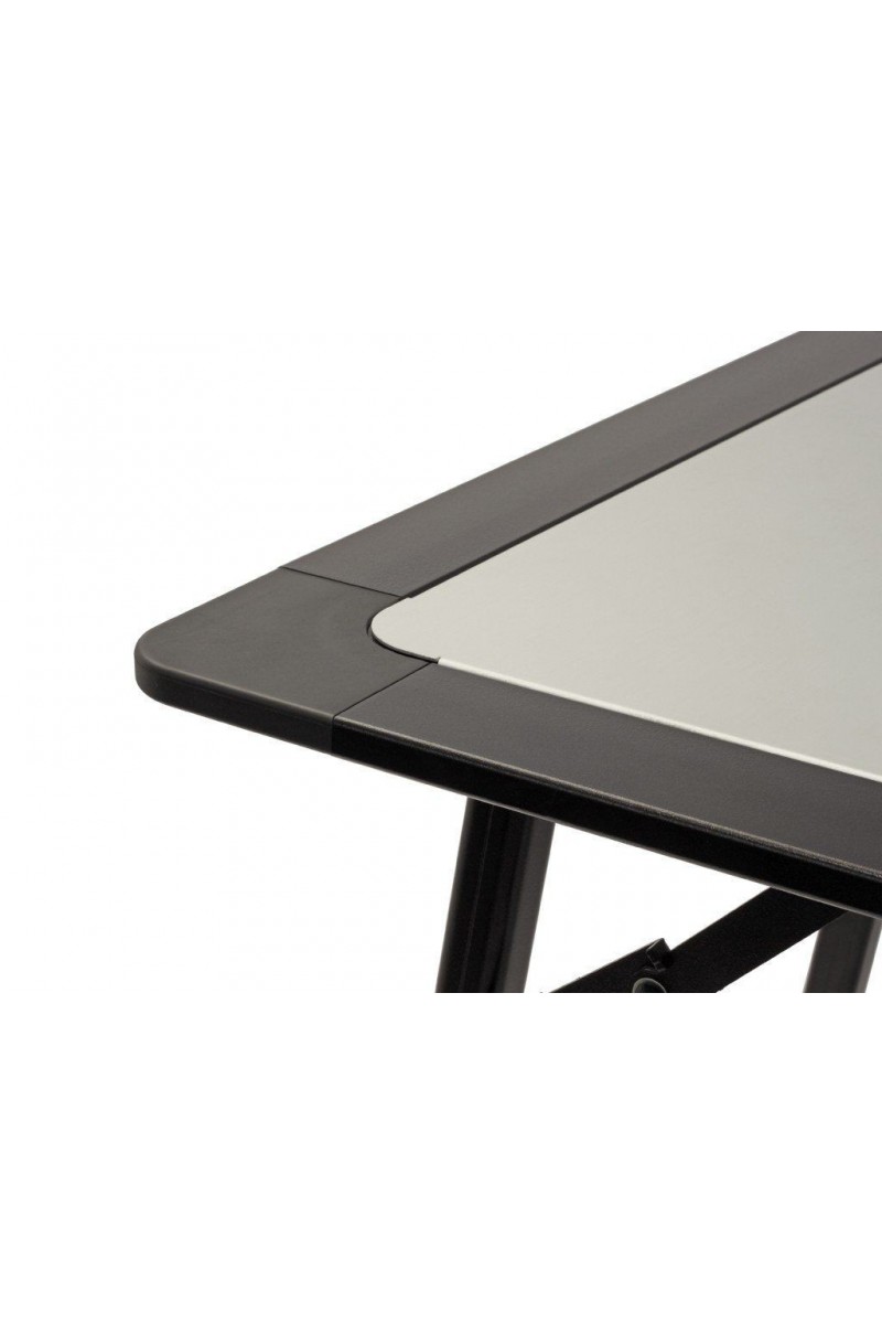 Cette table de camping légère et solide est idéale pour la préparation de la nourriture, pour servir la nourriture et pour diner autour de la table. La table est fabriquée en acier inoxydable et en aluminium époxy noir. La table est spécialement conçue pour être rangée EN DESSOUS de la plupart des galeries Slimline II.*