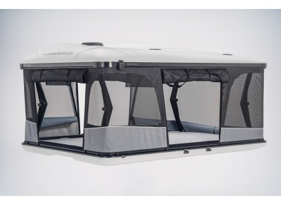 La fermeture et l'ouverture de la tente sont assistées automatiquement par 4 amortisseurs hydrauliques et des bras articulés, les pistons assurent la tension du tissu de la tente de toit pour une parfaite résistance au vent. Le mécanisme de verrouillage est breveté et peut être réglé avec précision pour obtenir les meilleures performances.