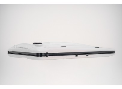 La toile grise est constituée d'un tissu enduit de haute qualité à 3 couches, de 650 gr/m2, à doubles coutures, qui réfléchit les rayons solaires et résiste aux UV, à la chaleur et à l'eau. Elle est montée sous un guide en aluminium incurvé vers l'extérieur de la coque, assurant un parfait écoulement de l'eau et une forte résistance au vent, testée dans des rafales de 120km/h.