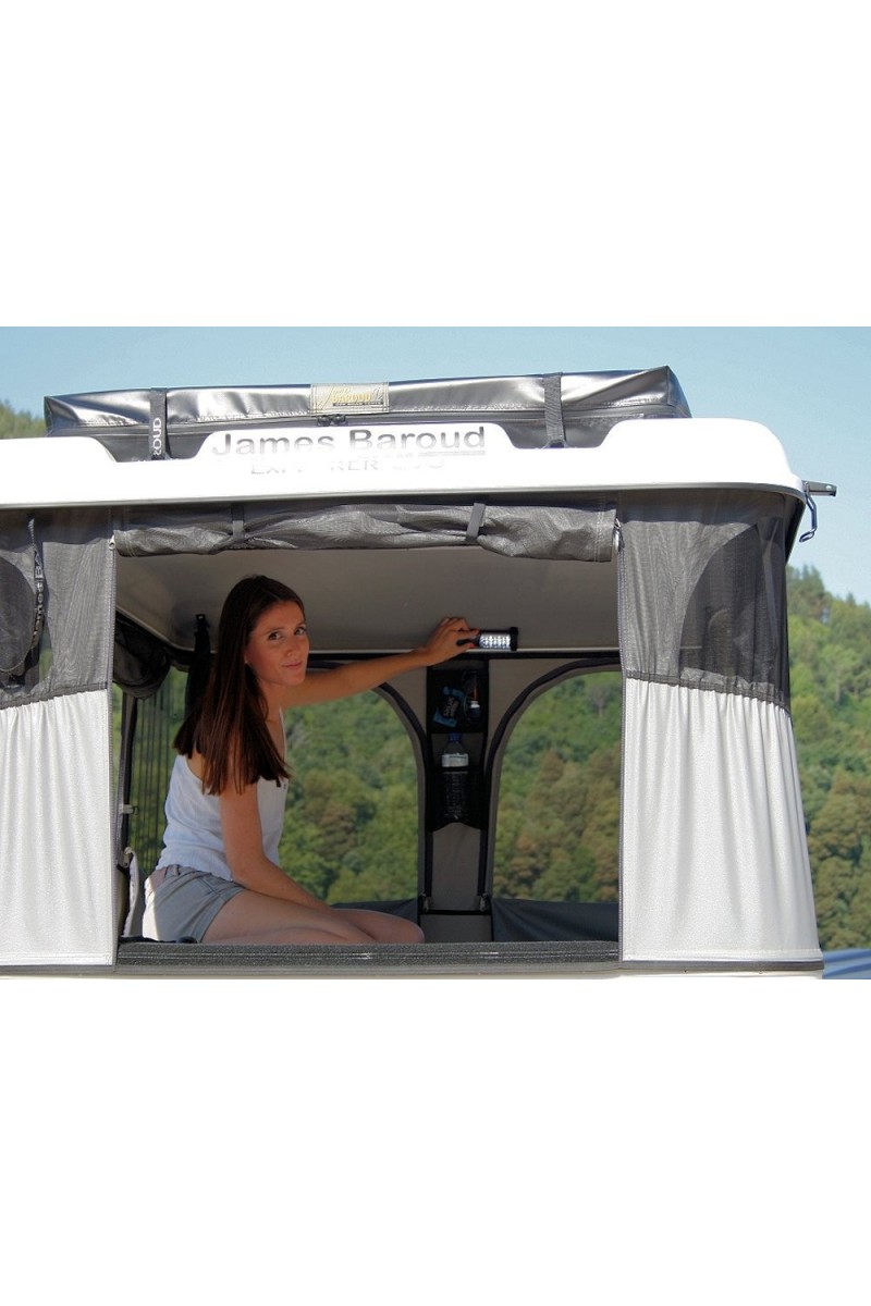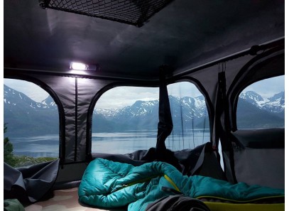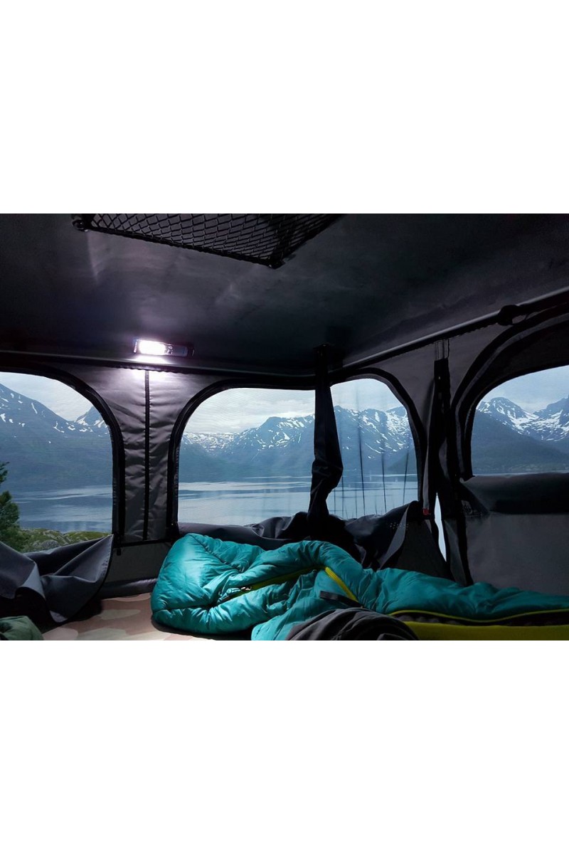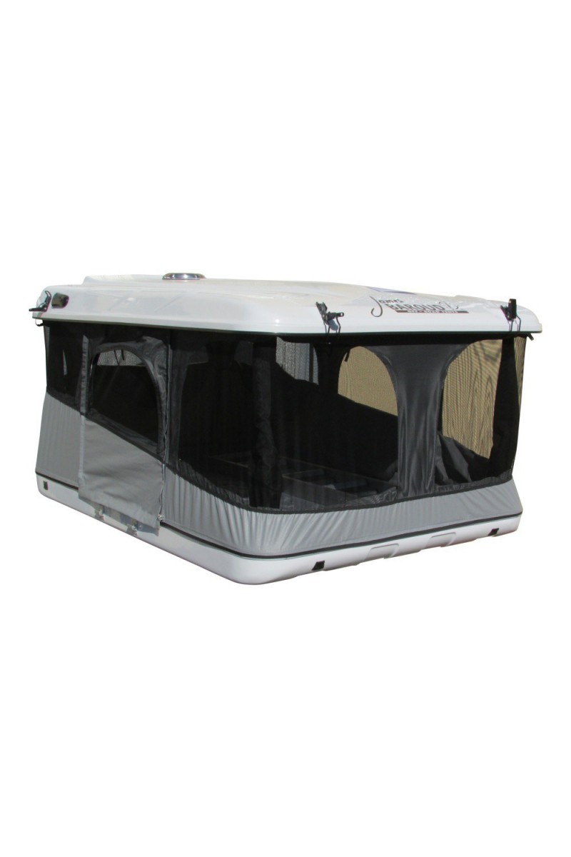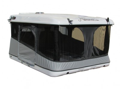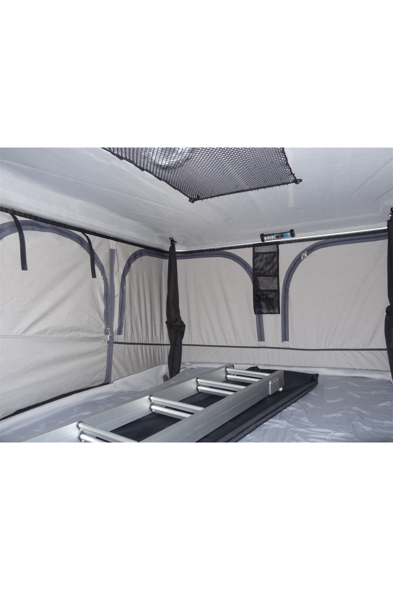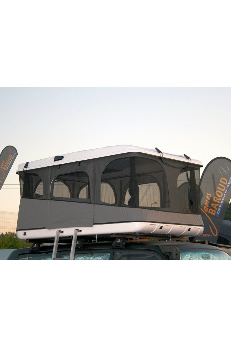 La toile est montée sur des câbles insérés dans des glissières en aluminium, galbées vers l’extérieur des coques (afin d'éviter les infiltrations), pour faciliter son démontage ou pour utiliser la tente comme un coffre de toit.
