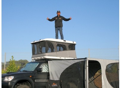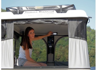 L’ouverture de la tente se fait automatiquement en moins de 5 secondes au moyen de deux vérins Alkos, montés sur rotules, actionnant des bras articulés protégés par une housse en toile. La fermeture est réalisée en 15 secondes par une seule personne. Un élastique incorporé autour de la toile assure le retrait de celle-ci dans les coques rigides pendant la fermeture