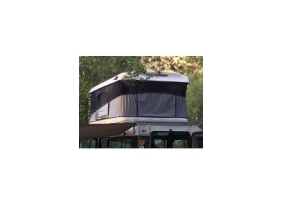 La qualité de la toile ne se dégrade pas dans le temps. Toile gris clair, aspect brillant, renvoie les rayons du soleil, Anti-UV, imputrescible, montée sur glissières. Coutures triplées, étanches. Forte résistance au vent. 2 portes latérales, toile et moustiquaires. 2 portes, avant et arrière avec fenêtres et moustiquaires. Fermeture éclair + velcro. 4 poches de rangement.
