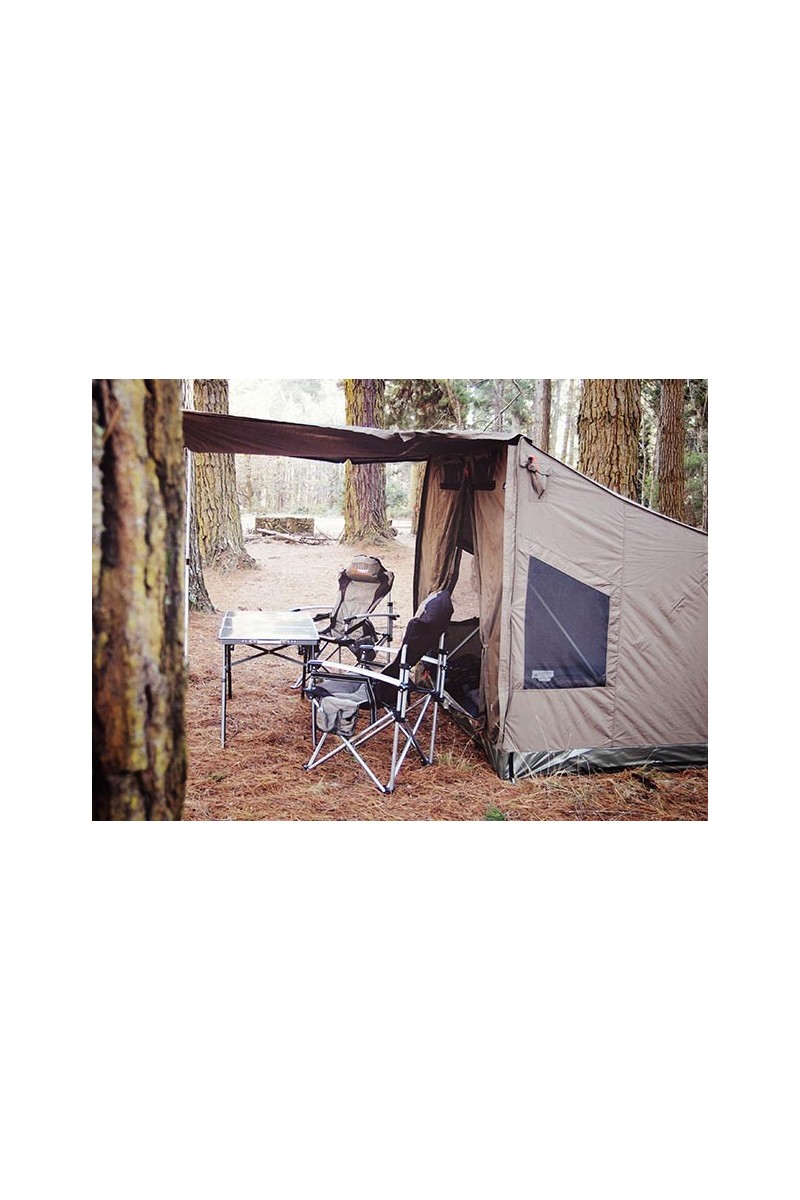 Les tentes OZTENT se montent ultra rapidement et facilement en 30 secondes et ceci grâce à un systême ingénieux d'armature alu articulée. Leur hauteur intérieure importante et leur auvent ingénieux permet aux OZTENT de se transformer en salle à manger ou en abris d'appoint. Réalisée en toile Ripstop en haute qualité et garanti étanche et sont dotées de larges fenêtres à moustiquaires. Parois d'auvent en option. RV-, 3 pers dimm. int. :240x200x190cm dimm. auvent : 240x200cm dimm. pliée : 200x30x15cm poids : 18kg