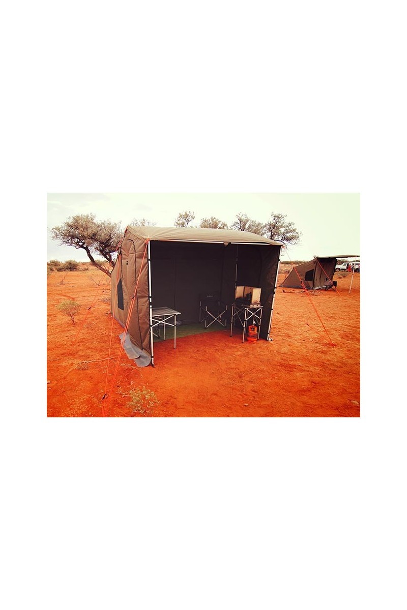 Les tentes OZTENT se montent ultra rapidement et facilement en 30 secondes et ceci grâce à un systême ingénieux d'armature alu articulée. Leur hauteur intérieure importante et leur auvent ingénieux permet aux OZTENT de se transformer en salle à manger ou en abris d'appoint. Réalisée en toile Ripstop en haute qualité et garanti étanche et sont dotées de larges fenêtres à moustiquaires. Parois d'auvent en option. RV-4, 4 pers dimm. int. :240x240x190cm dimm. auvent : 240x200cm dimm. pliée : 200x35x15cm poids : 19kg