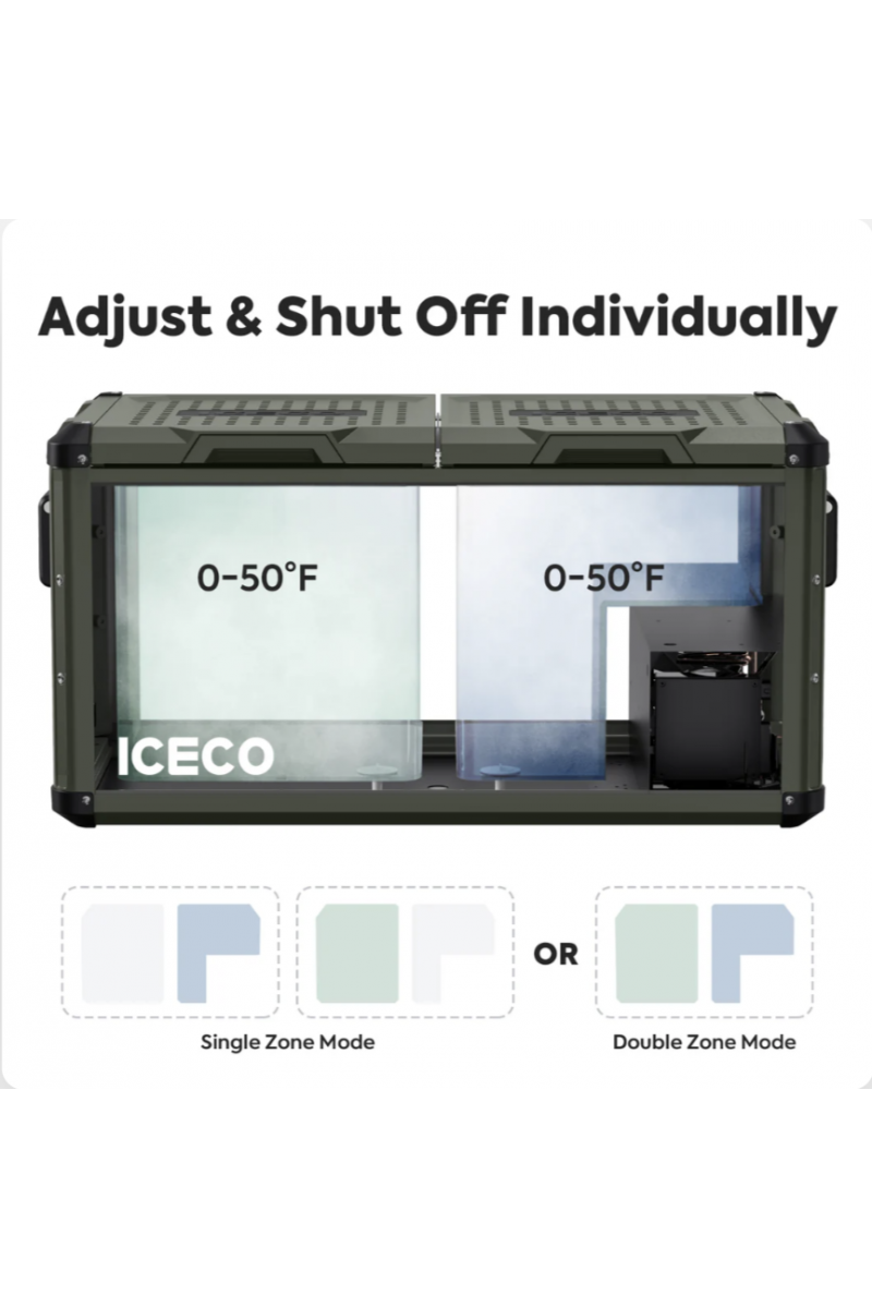 La ICECO VL75PROD est une glacière Dual-Zone de 75 L qui permet de refroidir et congeler simultanément dans deux compartiments indépendants, ou d’utiliser un seul compartiment si souhaité.