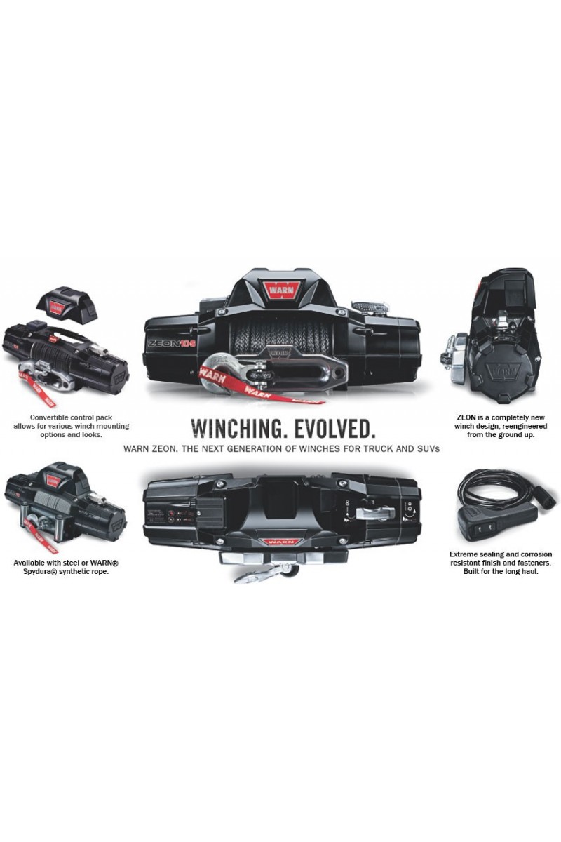 La nouvelle génération de treuils WARN Le design de cette gamme baptisée ZEON est totalement nouveau. La conception symétrique donne à ces treuils un look innovant et renforce leurs qualités : ils sont compacts, encore plus résistants et plus puissants.